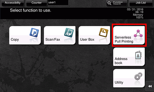 Tapping [TX/RX Result] displays the status of MFPs in all the serverless pull printing groups.