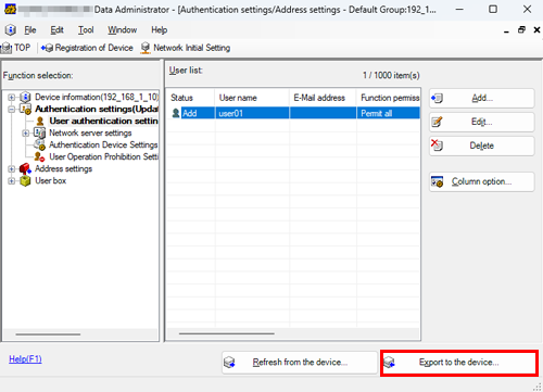 Data Administrator supports the batch copy function. When necessary, you can collectively write the registered authentication information to multiple devices.