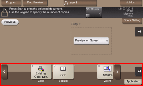 If an output image cannot be displayed, [Preview on Screen] is displayed. To check an output image, tap [Preview on Screen], and confirm the target output image on the preview screen.