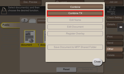 When collectively sending multiple files, you can combine those files and handle them as a single job. This is referred to as "Combine TX".