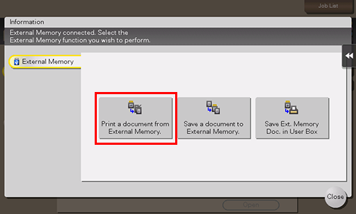 You can also perform the same operation by tapping [System] - [External Memory] in User Box mode.