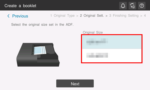Some finishing sizes cannot be selected depending on the size of the loaded original.