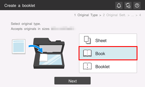 The opening direction of the selected book original is the same as that of the booklet to be created.