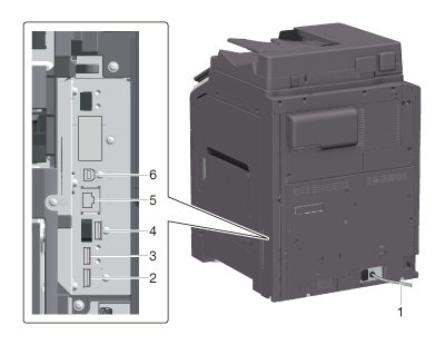 6 | USB Port (Type B) USB2.0/1.1 | Connect to this port when using this machine as a USB-connected printer. |