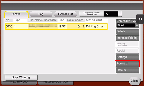 If it is not possible to promptly deal with the problem, the saved fax can be forwarded to another destination.