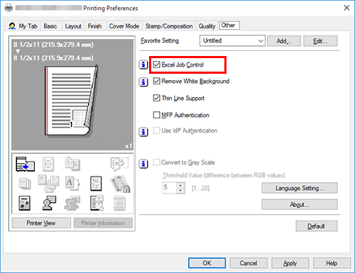 In the [Other] tab, select the [Excel Job Control] check box.