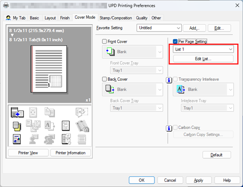 Select the [Per Page Setting] check box in the [Cover Mode] tab.