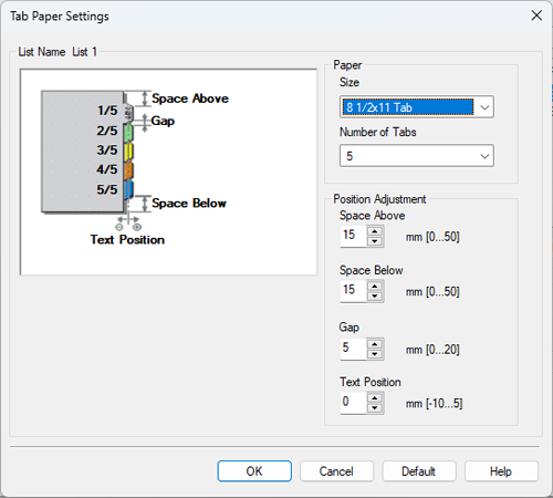 Print > Printing in the Windows Environment > Printing Options > Printing on the Tabs of Index Paper