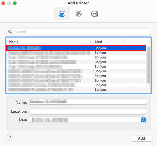 Add the printer automatically detected by Bonjour to the computer.