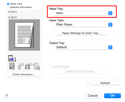 In [Paper Tray] in [Paper Tray / Output Tray], select the paper tray for printing.