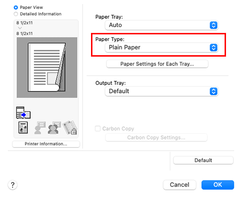 In [Paper Type] in [Paper Tray / Output Tray], select the type of paper for printing.