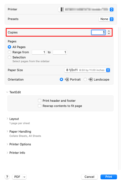 In [Copies] of the [Print] screen, specify the number of copies you want to print.