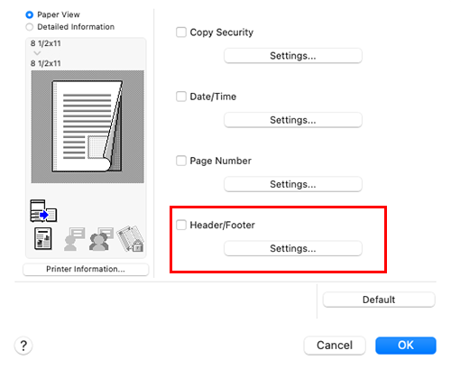 As necessary, change the range of pages on which the header/footer is printed and other settings. For details, refer to the [Header/Footer] settings (described after this procedure).