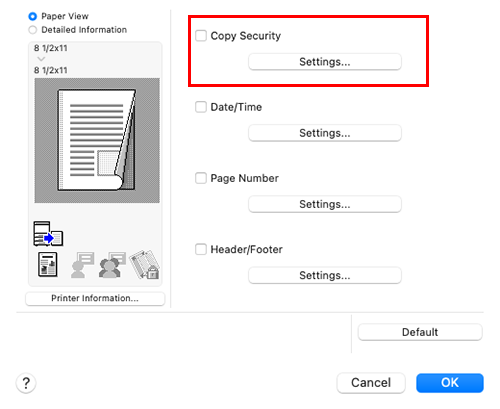 [Background Pattern] | Select the copy security pattern from the background patterns registered in this machine. |