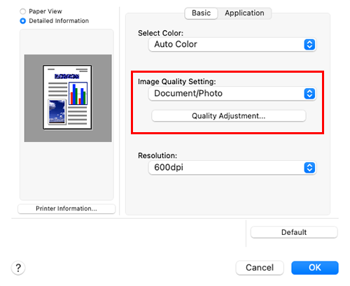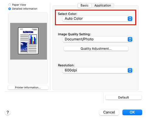 In [Select Color] of [Quality] - [Basic], select a color mode for printing.