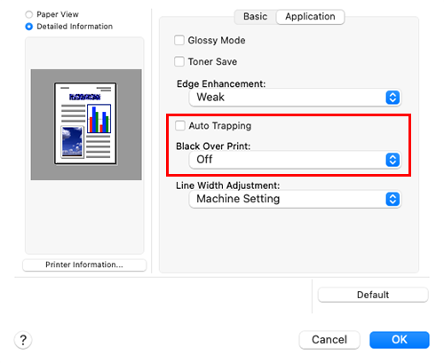 In [Quality] - [Application], set [Auto Trapping] or [Black Over Print].