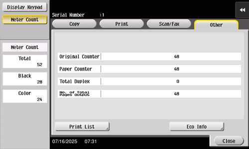 [Paper Counter] | Allows you to check the total number of sheets that are printed in each mode.