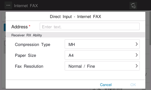 Settings of [Direct Input - Internet FAX]