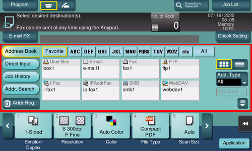 Using the Stop key enables you to stop scanning the original. A list of the currently stopped jobs is displayed. To stop transmission, select the target job from the list, and delete it.