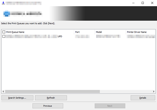 [Print Queue Name] (Printer name): Automatically set from the information of the device selected in the list.