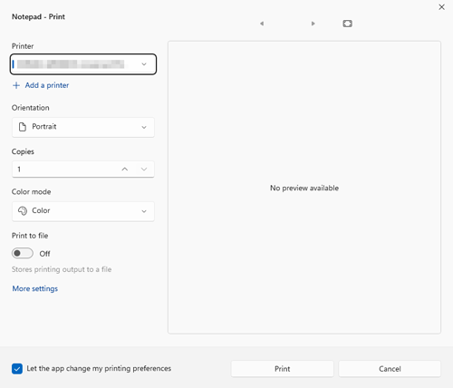 Check that the fax driver of this machine is selected in [Printer] (or [Select Printer]), and click [Print].