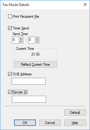 [Timer Send] | Select this check box to set a time to send a fax. The fax is automatically sent at the specified time.