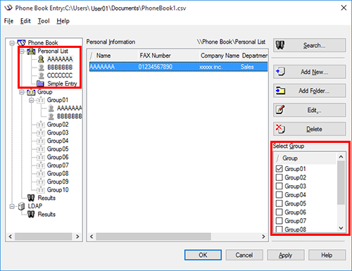 The personal information is registered and displayed under [\\Phone Book\Personal List]. If you have selected groups for the recipient, it will be displayed in the groups list.
