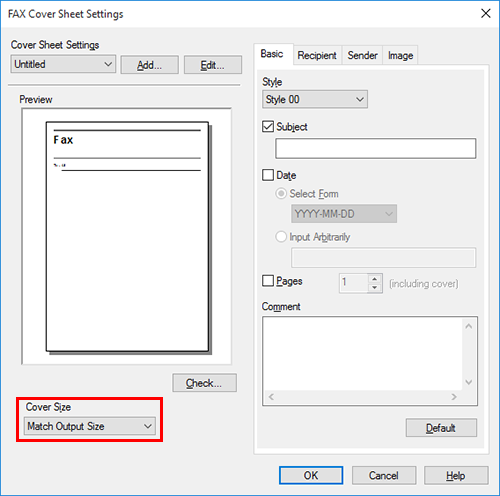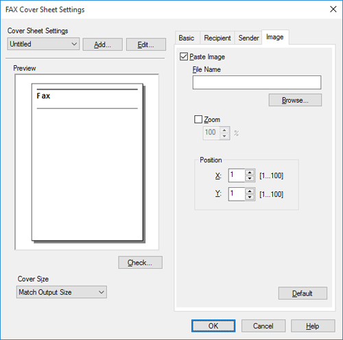 When you click [Add...], the cover sheet image is saved and you can recall it later by selecting [Cover Sheet Settings].