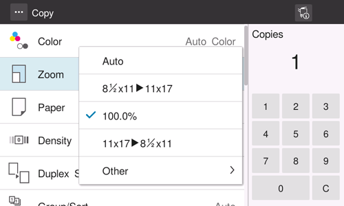 (3) When a zoom ratio for copying is manually specified, set [Zoom] to [100.0%].