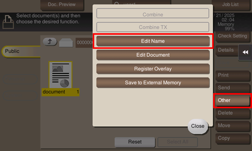Select a file to rename, tap [Other], then tap [Edit Name].