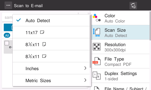 When the size of the original is not detected correctly, specify the size of the original you want to scan.