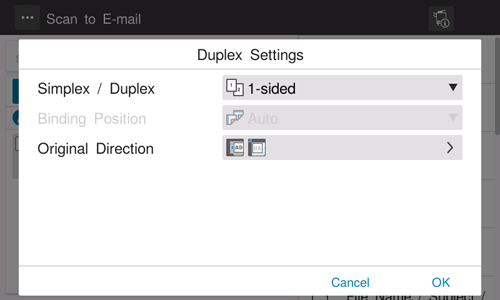 [Simplex / Duplex] | Select the side to scan the original (Simplex/Duplex). |