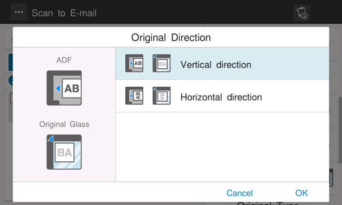When scanning a 2-sided original, specify the original loading direction so that the vertical direction of the scanned original is set correctly.