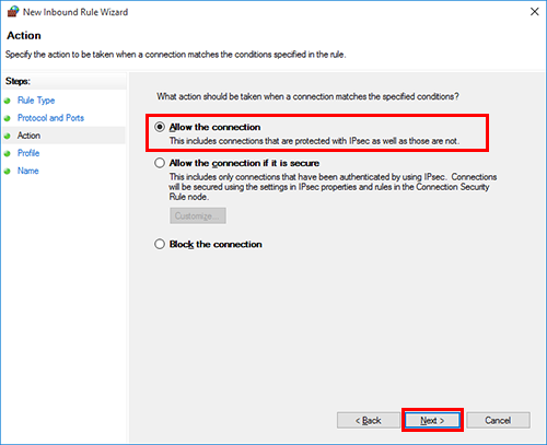 Ensure that [Allow the connection] is selected, and click [Next].