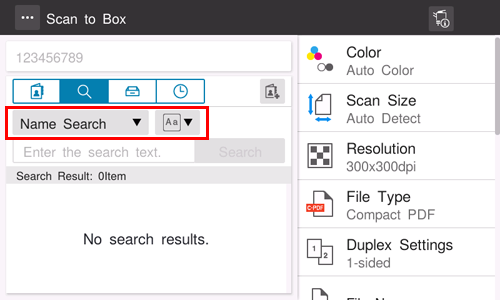 If [Search Box No.] is selected in step 1, enter the User Box No. you want to search for.