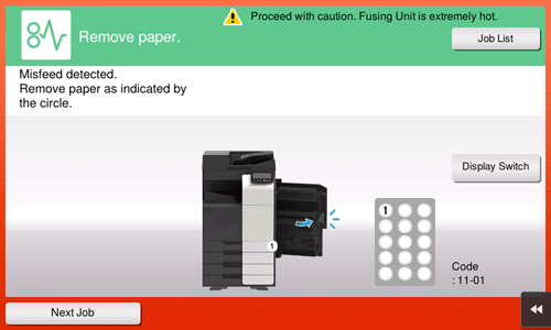 A paper jam may occur in a location other than the location displayed on the screen of this machine. Also, check the locations not displayed on the screen.
