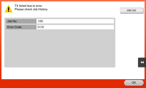 The error code can also be checked on the [Job Details] screen. To display the [Job Details] screen, tap [Job List], select the job that caused the error from [Log], and tap [Details..].