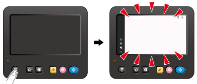 (2) Touch the Touch Panel. In Power Save (Low Power/Sleep) mode, this machine returns from Power Save mode when the Touch Panel is touched or a key on the Control Panel is pressed, and the Touch Panel appears normally.