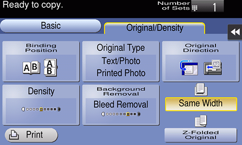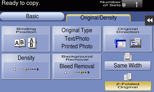 Seleccione [Original/Densidad] - [Orig. plegado en Z] para configurar los ajustes.
