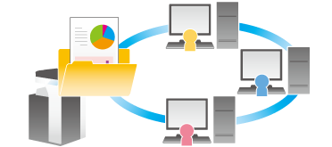 Si está activado [Guardar automáticamente los documentos en la carpeta compartida de la MFP] para la carpeta de usuario pública, la carpeta SMB correspondiente a la carpeta de usuario pública se crea en el almacenamiento de la máquina. Si se guardan archivos en la carpeta de usuario pública, también se guardan automáticamente en la carpeta SMB correspondiente. Los archivos guardados en la carpeta SMB a través de la carpeta de usuario pública se pueden extraer fácilmente accediendo a la carpeta SMB en la red desde un ordenador.