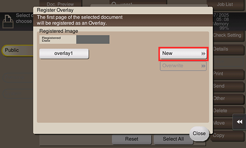 Seleccione un archivo y toque [Otros] - [Registrar superposición]. Ahora puede registrar un archivo como imagen de superposición.
