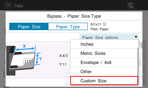 En este apartado se explica cómo cargar papel de tamaño personalizado en la Bandeja manual.