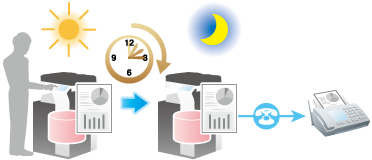 El uso de la función Transmisión de temp. para reservar la transmisión de faxes durante las horas de menos tráfico, a primera hora de la mañana y a última hora de la noche) ayuda a reducir los costes de transmisión. Con la función Transmisión de temp., puede reservar hasta 20 tareas de envío de fax.