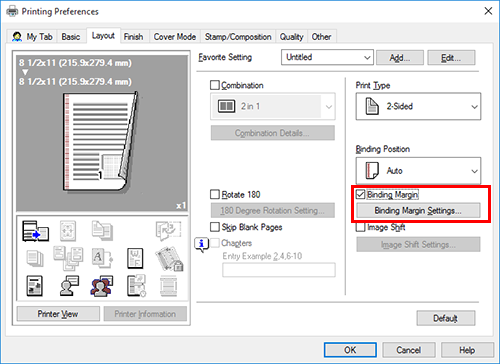 En [Posición de encuadernado], en la pestaña [Diseño], especifique la posición de margen.