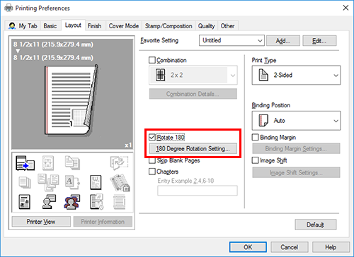 La imagen se imprime boca abajo. Utilice esta función para imprimir en sobres cuya dirección de carga no se pueda cambiar.