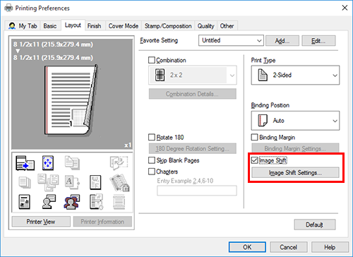Puede ajustar la posición de imagen modificándola en dirección horizontal o vertical, según el tamaño del papel. Al imprimir una imagen en el lado posterior, también es posible ajustar con precisión su posición.