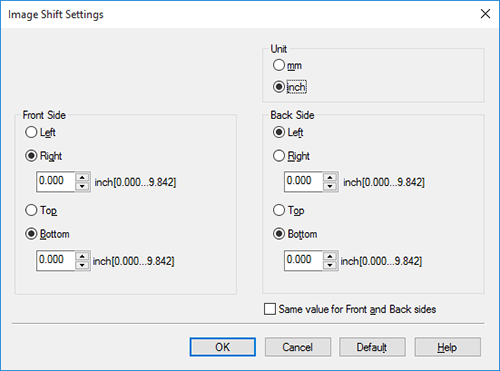 Al imprimir imágenes por ambas caras, si se selecciona la casilla [El mismo valor para los lados frontal y posterior], se aplicarán los mismos ajustes a ambas caras.