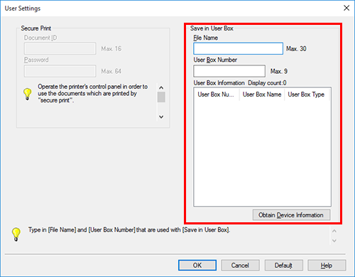 En caso de que siempre utilice el mismo nombre de archivo y número de carpeta, registrarlos con antelación eliminará la necesidad de introducirlos cada vez. Para obtener más información, consulte Cambio de la configuración de impresión predeterminada.