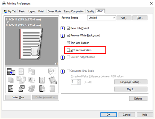 En la pestaña [Configurar] del controlador de impresora, compruebe que la configuración de autenticación de usuario/costo esté definida correctamente.