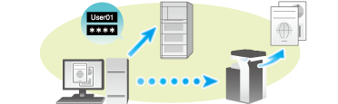 Cuando el servicio de impresión de esta máquina se une a un dominio de Active Directory, los usuarios pueden ejecutar la impresión desde el ordenador en el mismo dominio, sin tener que introducir la información de autenticación (nombre de usuario y contraseña). La información de autenticación introducida en la página de inicio de sesión en el ordenador se utiliza para esta autenticación.